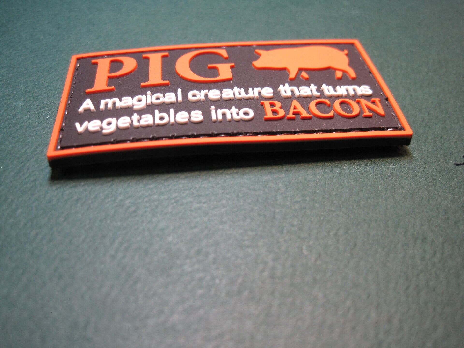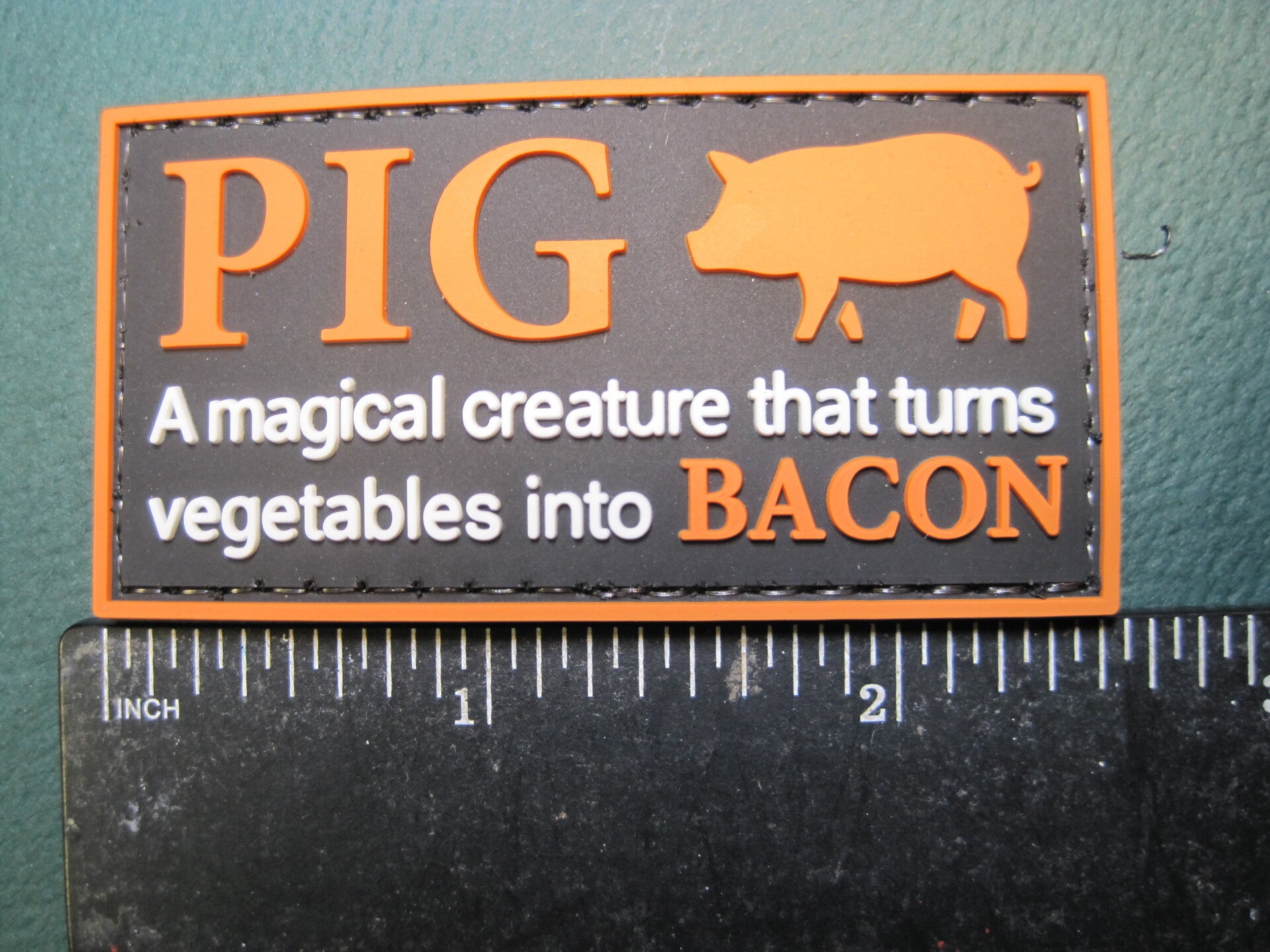 PIG A MAGICIAL CREATURE THAT TURNS VEGGIE'S INTO BACON PATCH PVC HOOK BACK