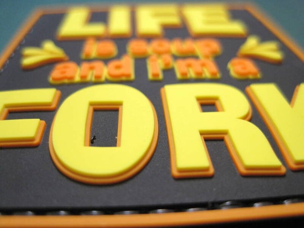 LIFE IS SOUP AND I'M A FORK MORALE PATCH PVC HOOK BACK