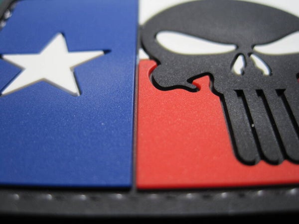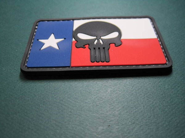 TEXAS PUNISHER FLAG, R-W-B, PATCH PVC RUBBER, HOOK BACK