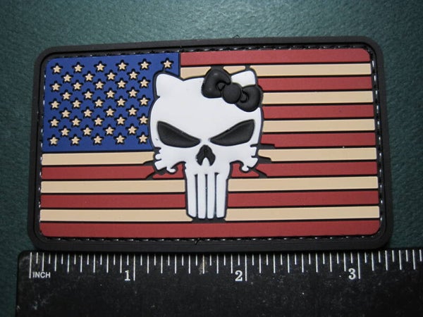 HELLO KITTY PUNISHER U.S. FLAG PATCH PVC HOOK BACK