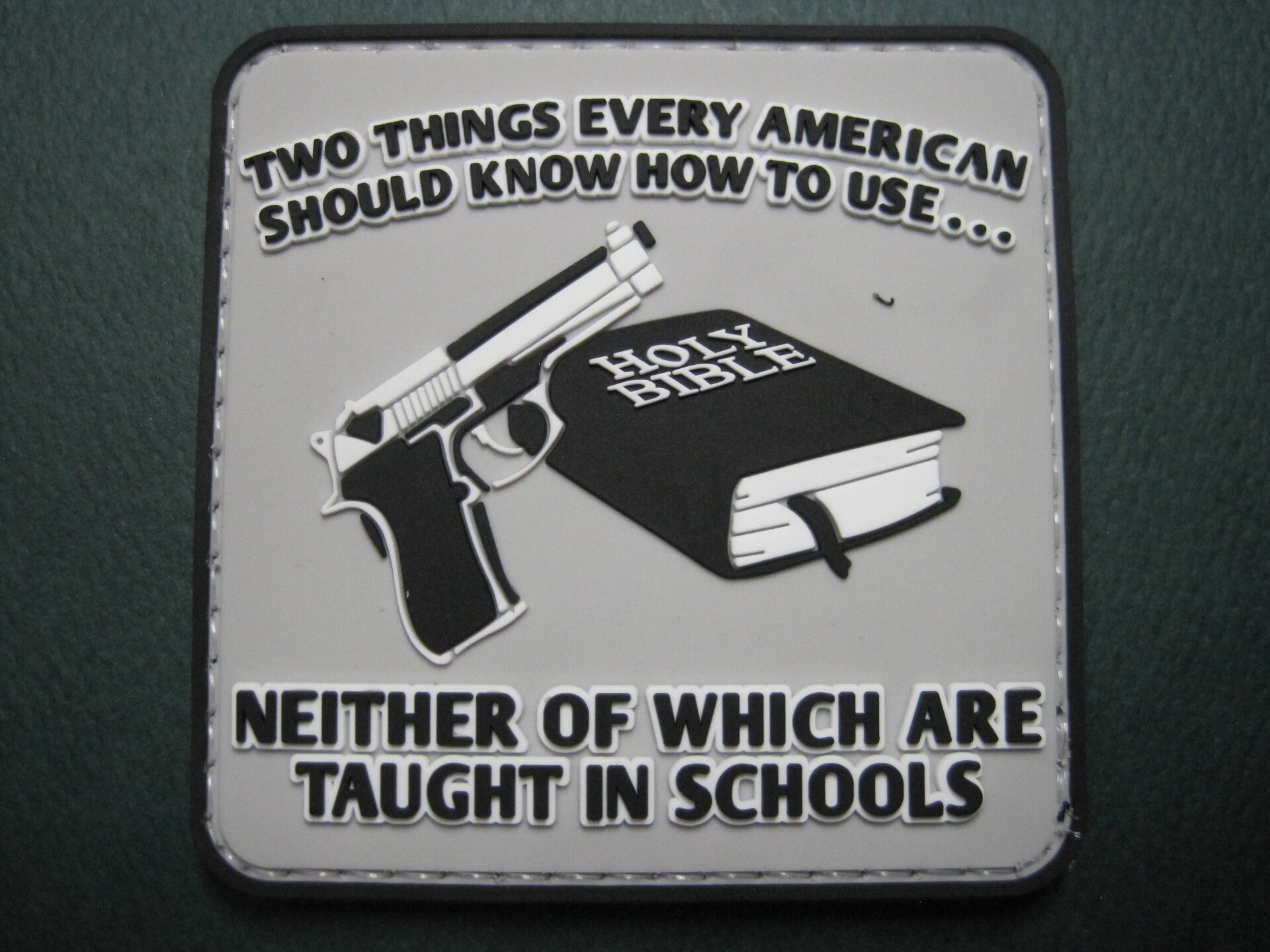 "GUNS AND THE BIBLE" MORALE PATCH PVC HOOK BACK