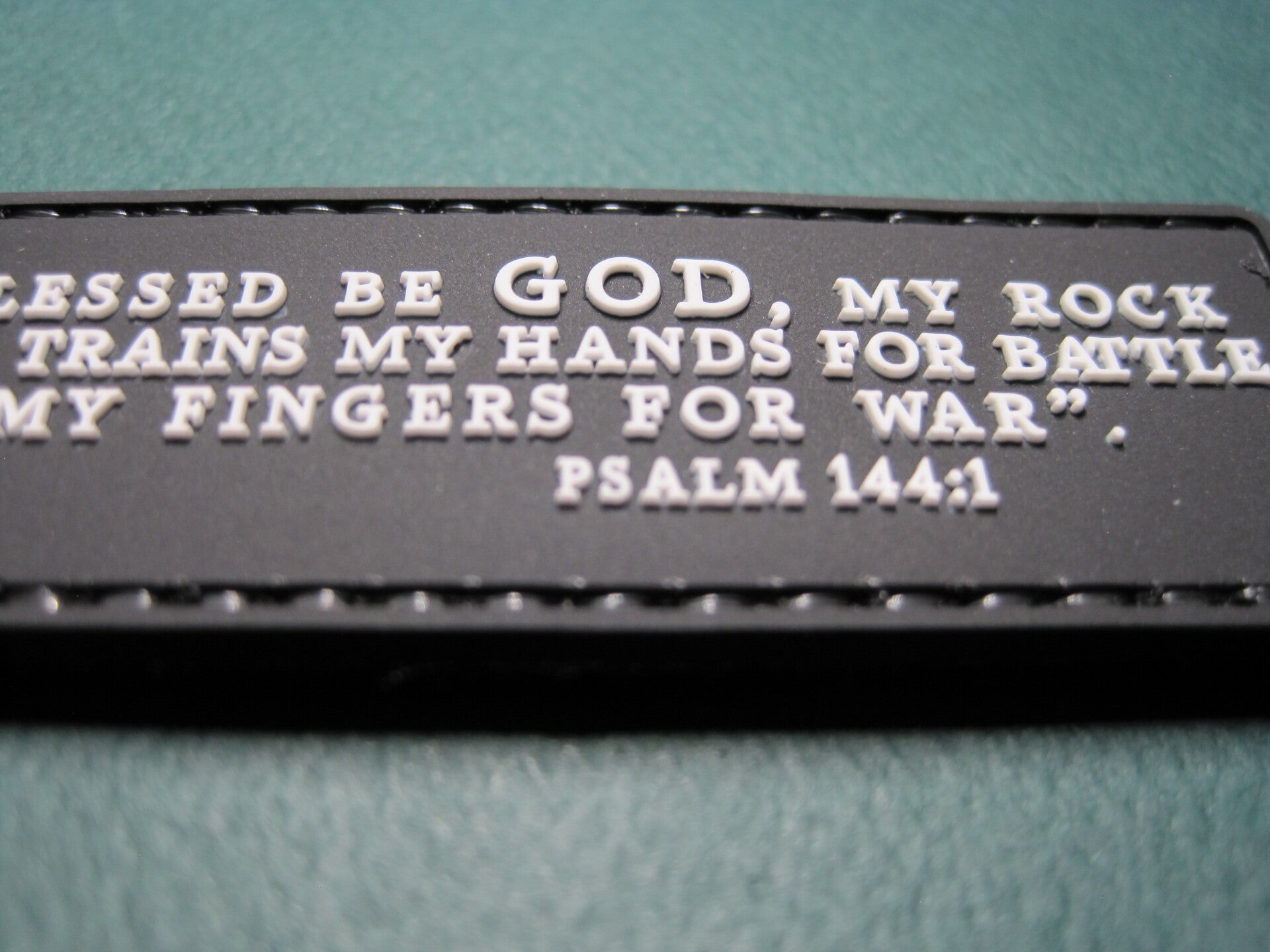 PSALM 144:1 "BLESSED BE GOD, MY ROCK" CHRISTIAN PATCH PVC HOOK BACK