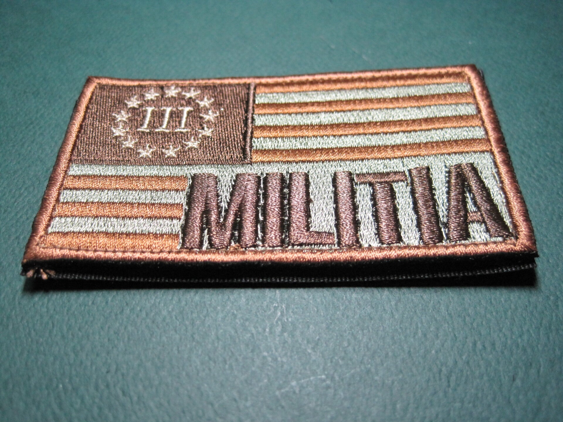 THREE PECENTER MILITIA U.S. FLAG PATCH COLOR CHOICE HOOK BACK