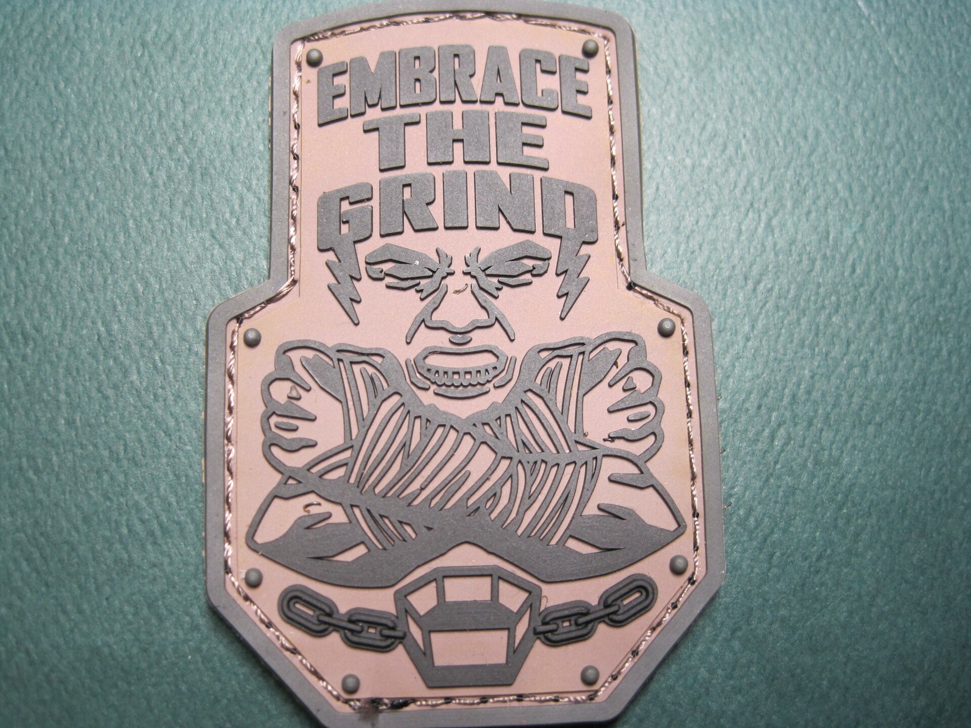 "EMBRACE THE GRIND" MORALE PATCH COLOR CHOICE PVC HOOK BACK