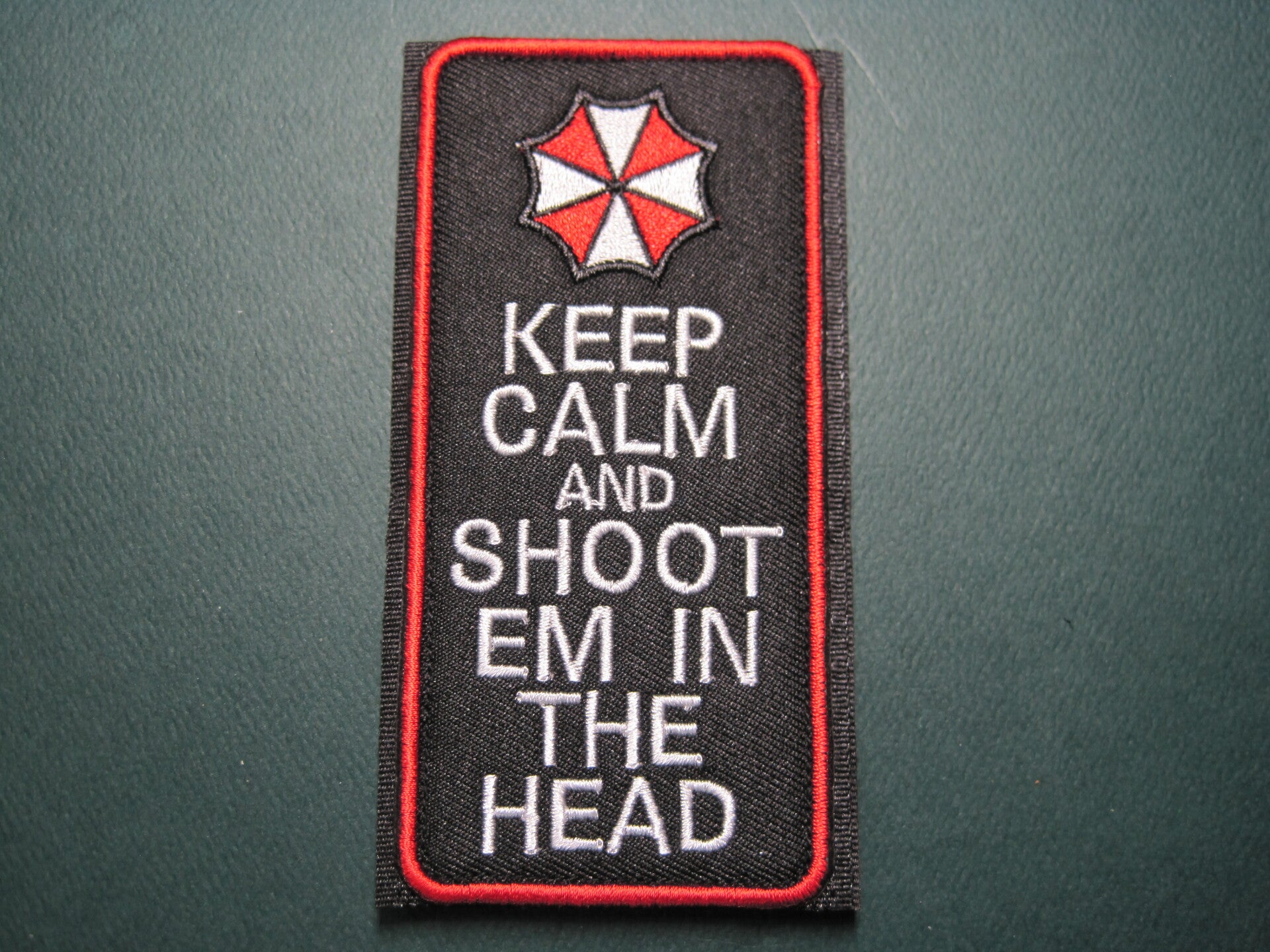 KEEP CALM AND SHOOT EM IN THE HEAD MORALE PATCH HOOK BACK