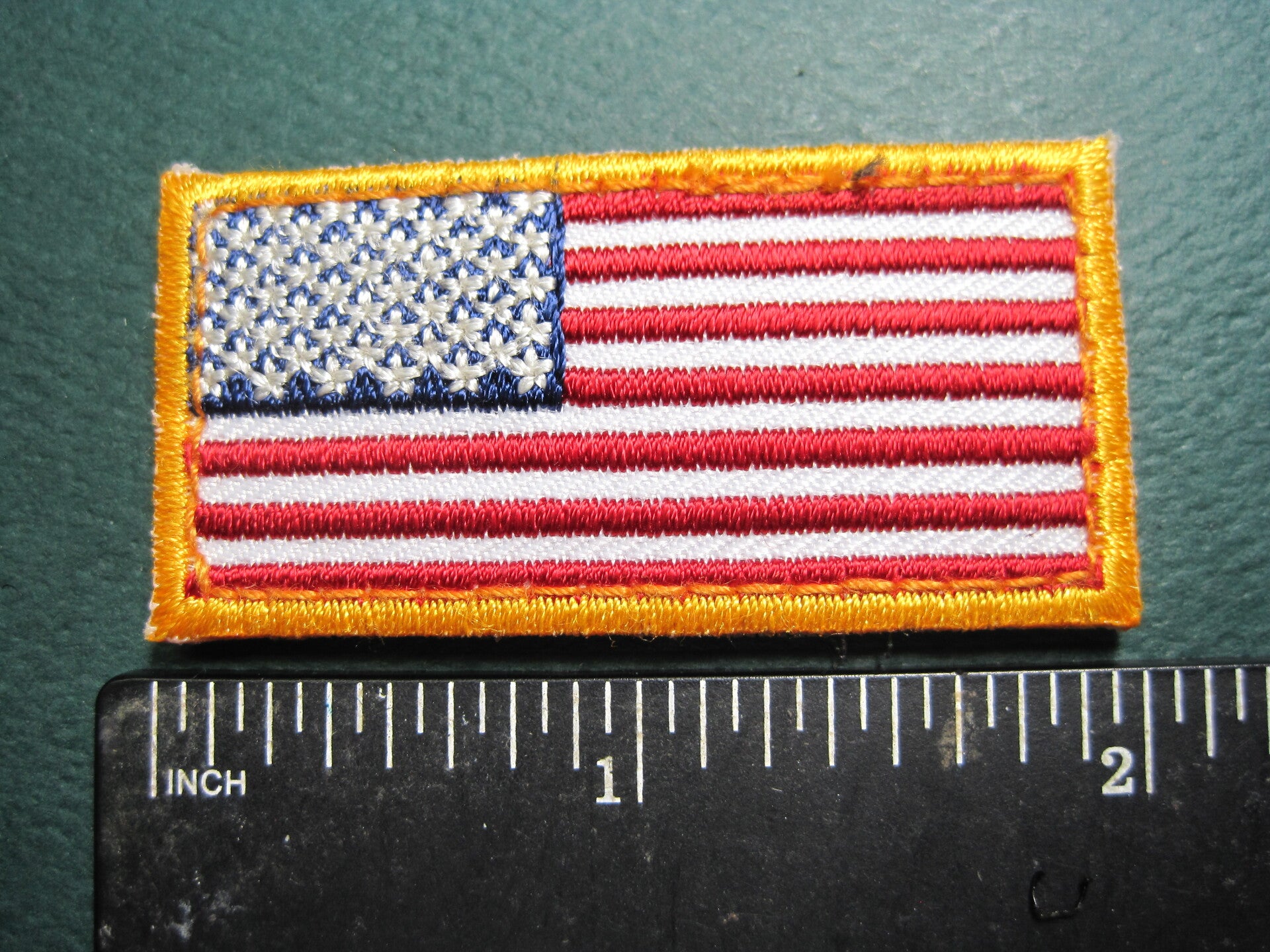U.S. FLAG PATCH SMALL, GOLD BORDER, EMBROIDERY, IRON ON