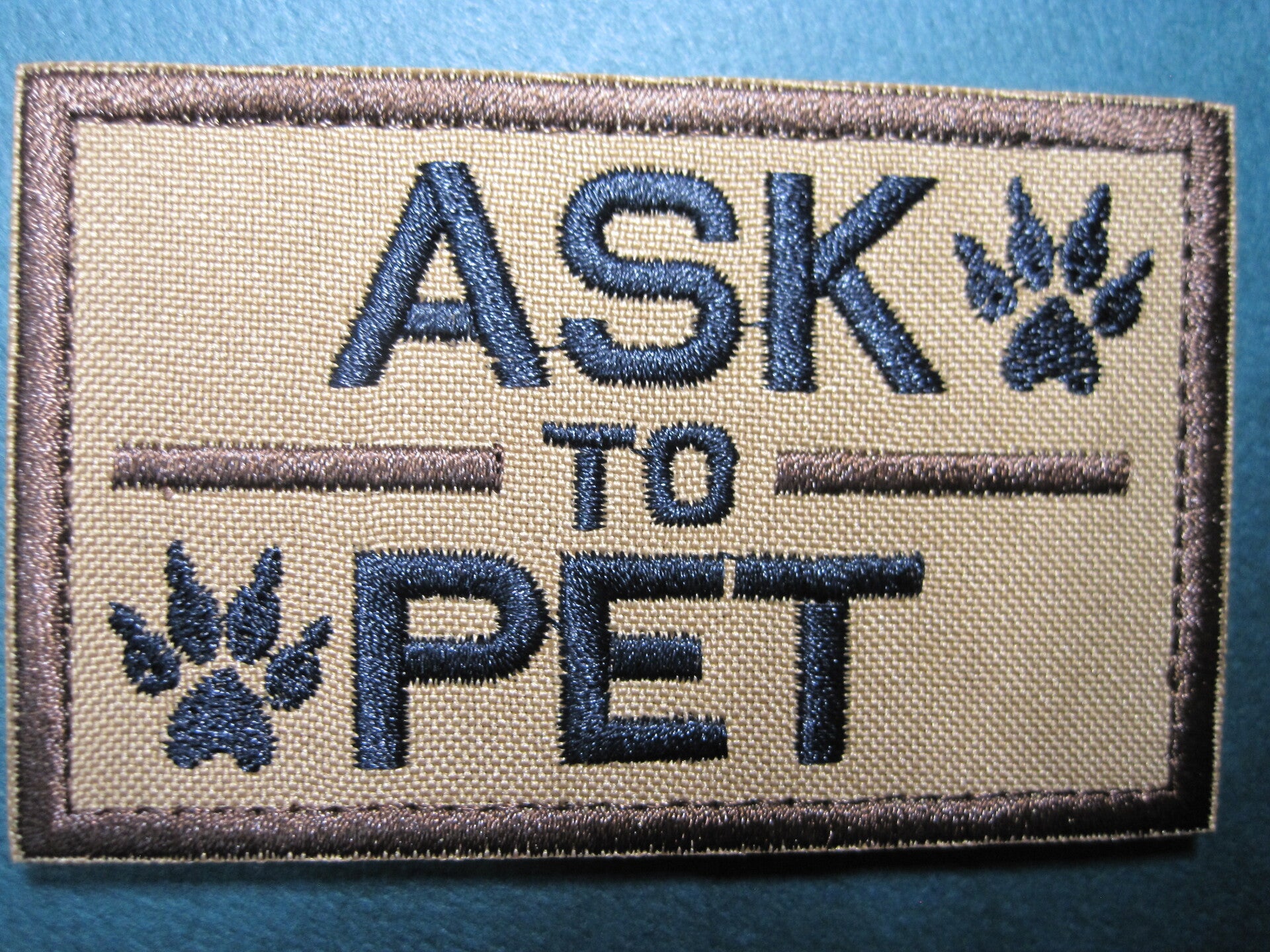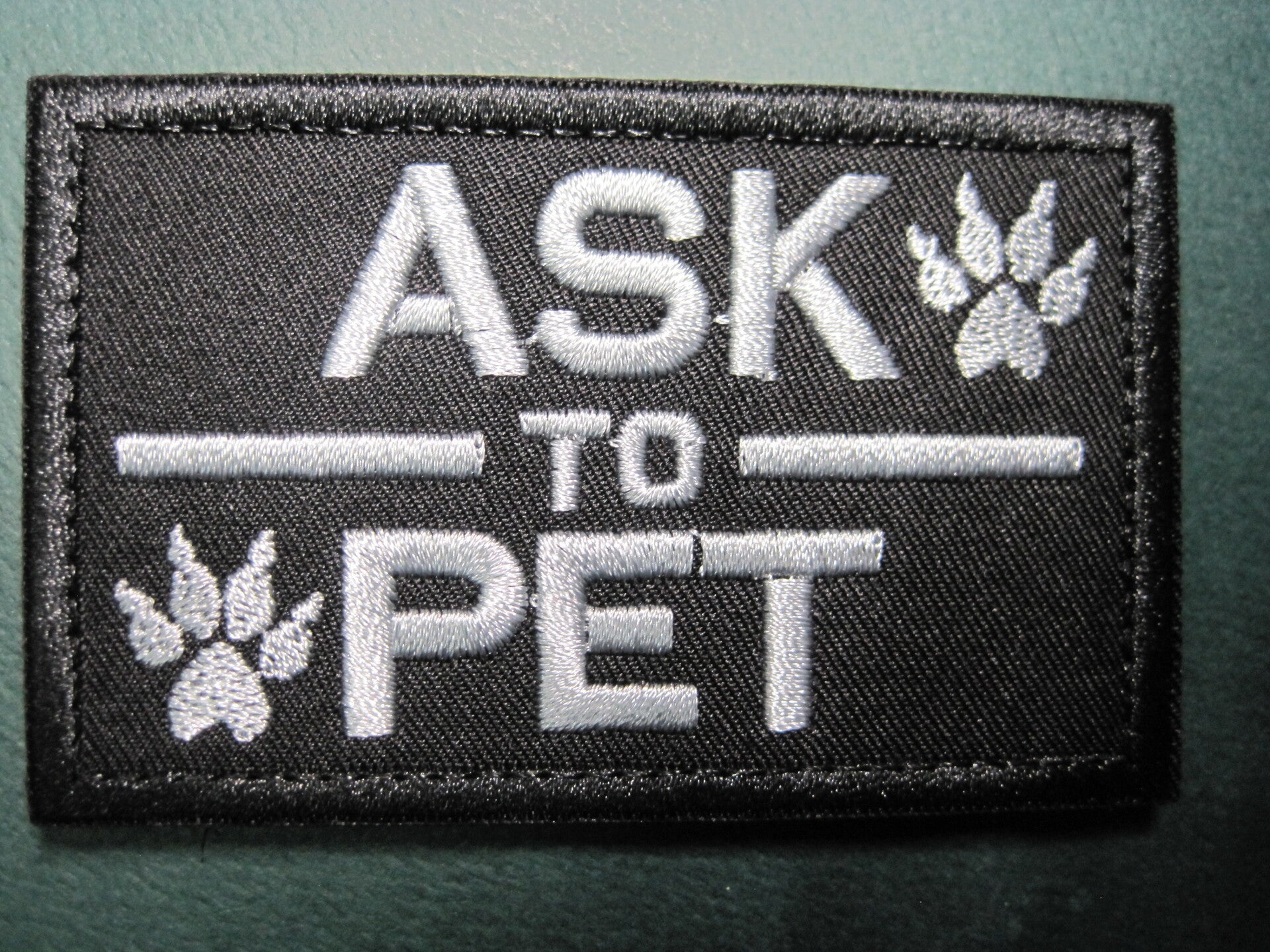 "ASK TO PET" K-9 PATCH, RECTANGLE, COLOR CHOICE, HOOK BACK