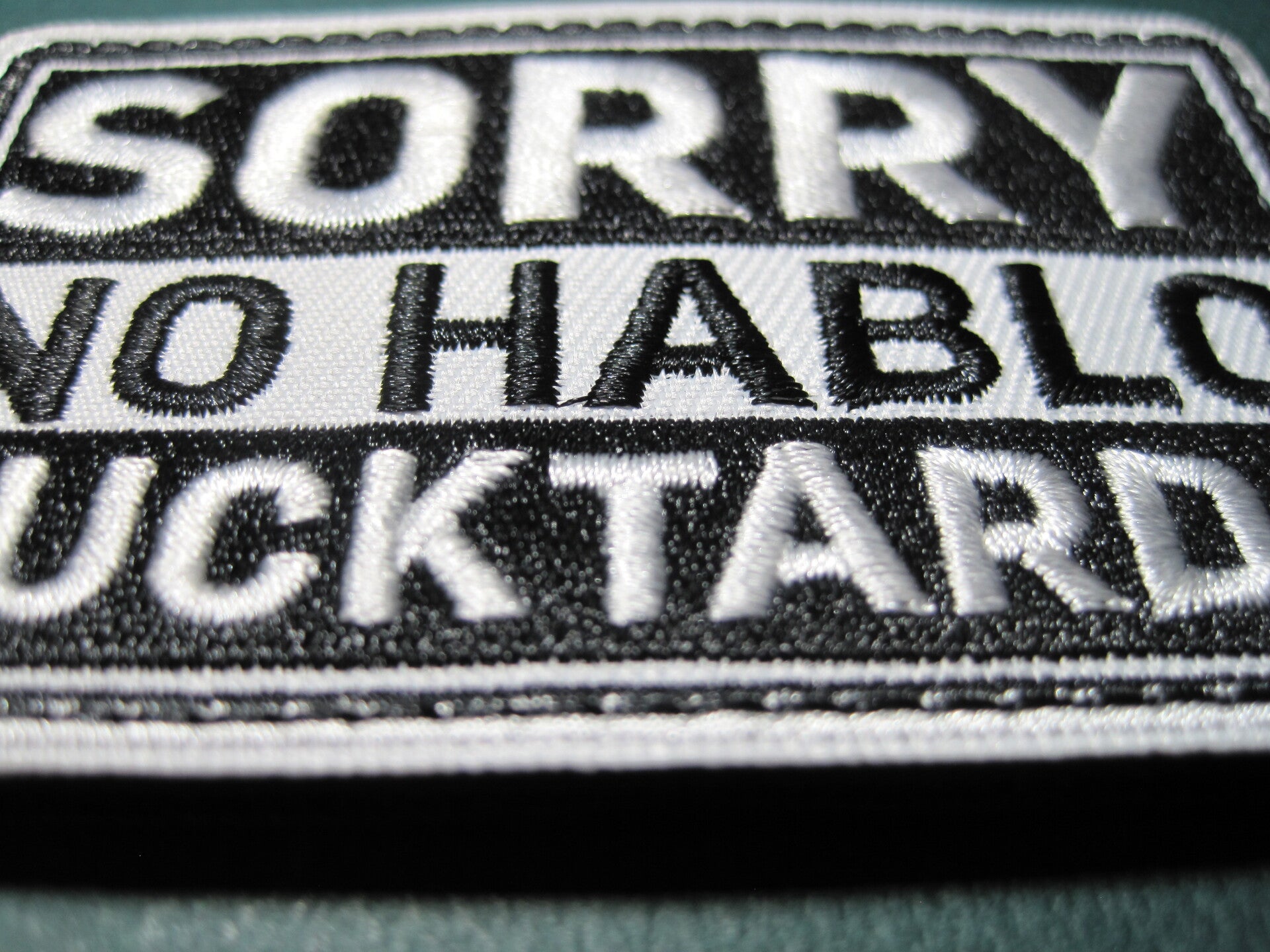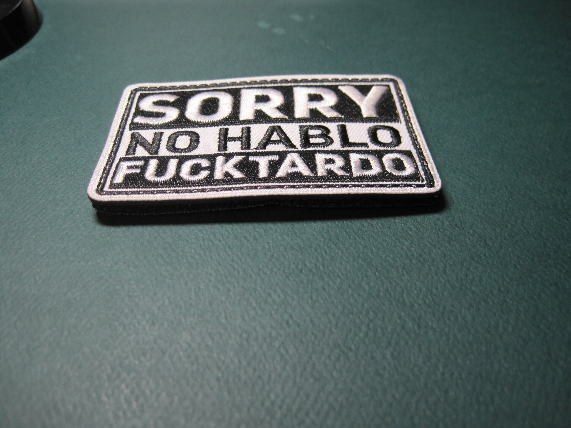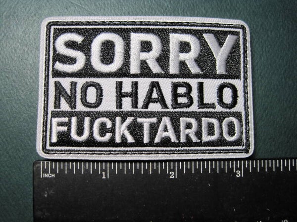 "SORRY, NO HABLO, FUCKTARDO" MORALE PATCH HOOK BACK